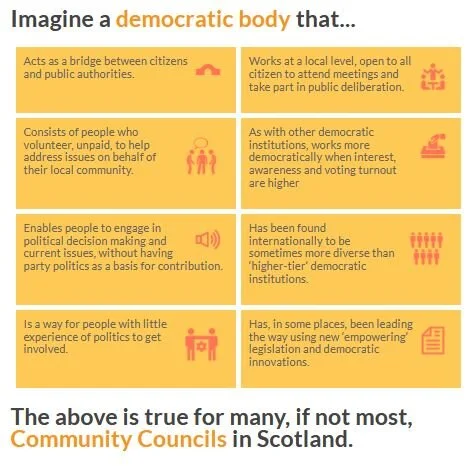 /This report from SCDC and What Works Scotland explores how community councils can be even more relevant in Scotland’s evolving policy context, especially as public service reform continues through the Local Governance Review.